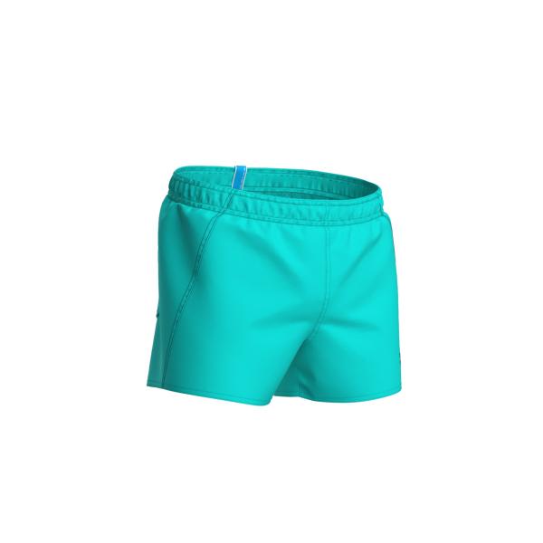 Arena beach/uintishortsit miellyttävästä polyesteristä. Sivutaskut. Takana velcrolla suljettava tasku. Vyötäröllä kiristysnyöri. Sisällä verkkohousu. Sivusauman pituus 32 cm.